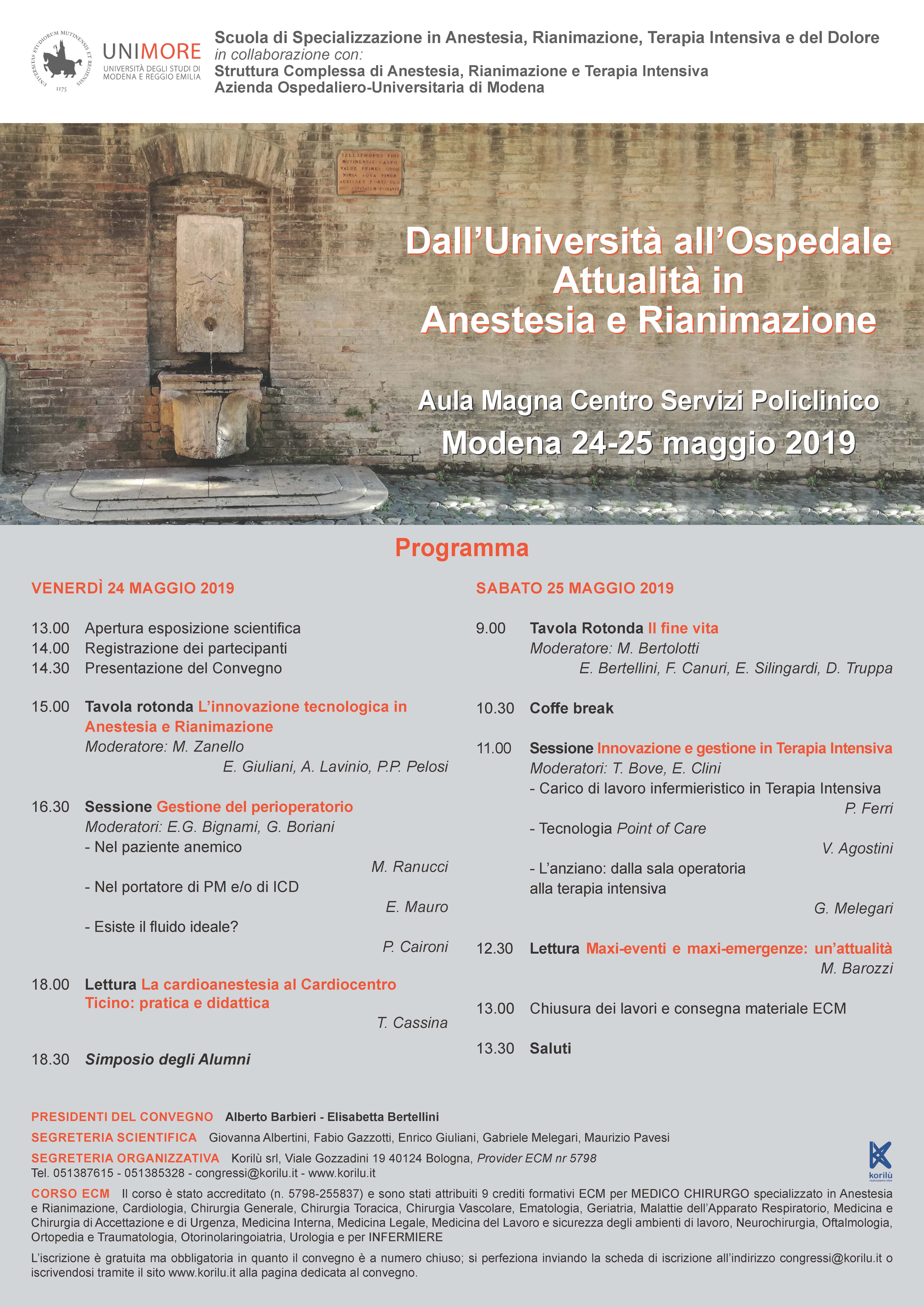 Il convegno, una collaborazione tra Scuola di Specializzazione e Servizio Ospedaliero, verte su argomenti di grande attualità nei campi anestesiologico-chirurgico ed intensivistico e su altre moderne tematiche