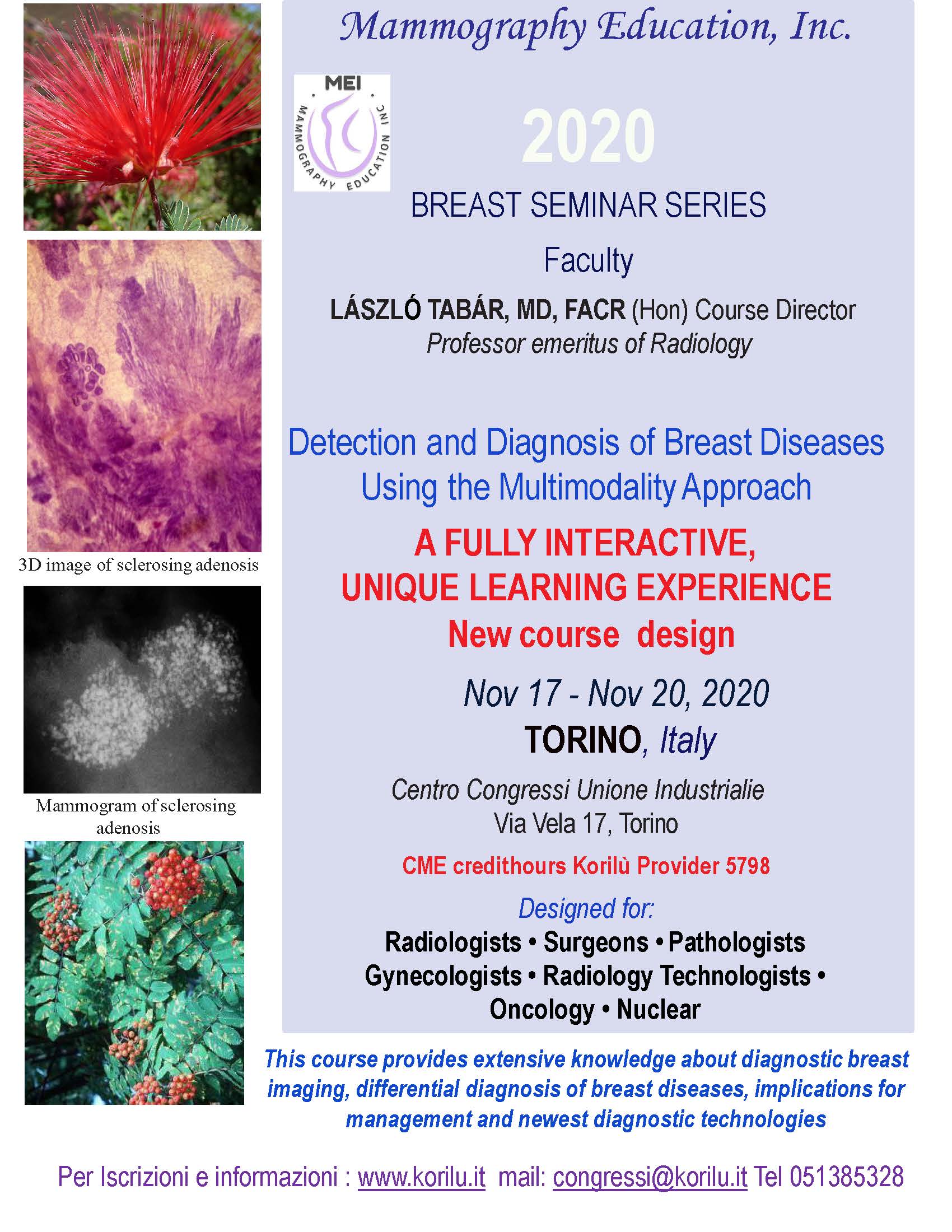 Il corso si rivolge alle figure mediche operanti all’interno di una Breast Unit ed ha come fine ultimo quello di facilitare il percorso clinico della Paziente garantendo un approccio interdisciplinare ed omogeneità di trattamento.