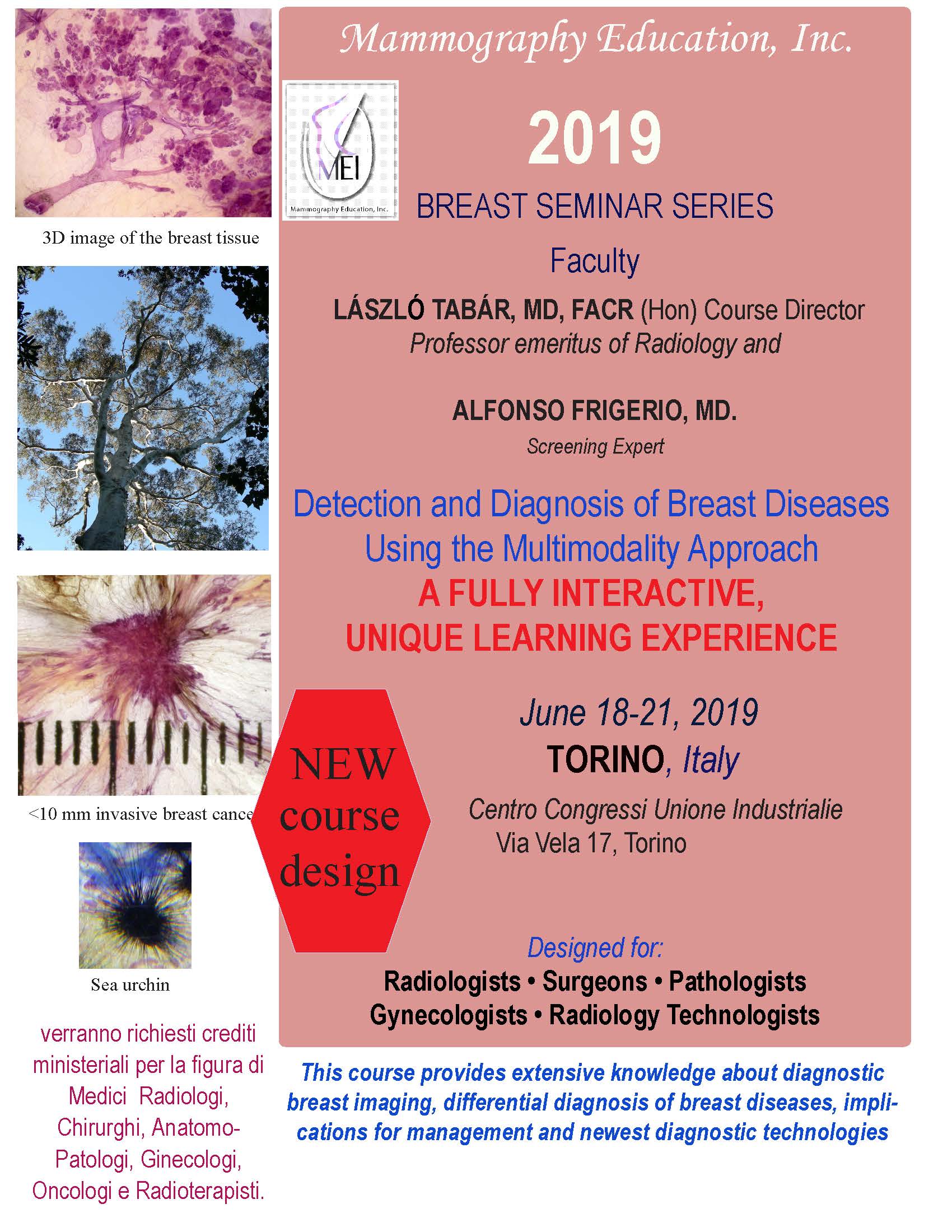 This course provides extensive knowledge about diagnostic breast imaging, differential diagnosis of breast diseases, implications for management and newest diagnostic technologies