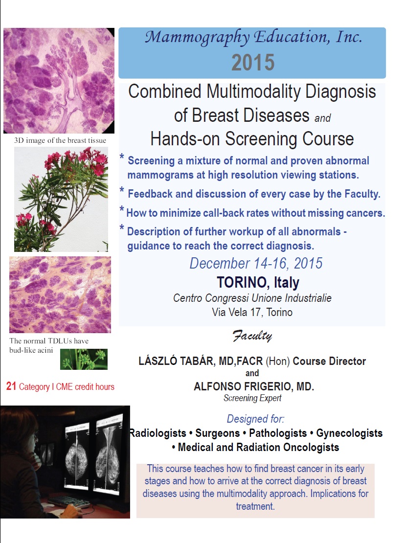 Questo corso con esercitazioni pratiche di Diagnosi Senologica, condotto da Laszlo Tabar, MD, FACR (Hon) offre cinque sessioni con esercitazioni pratiche in cui i radiologi (a coppie o affiancati con un loro Collega patologo o clinico) potranno leggere le mammografie di donne asintomatiche su workstation ad alta risoluzione.