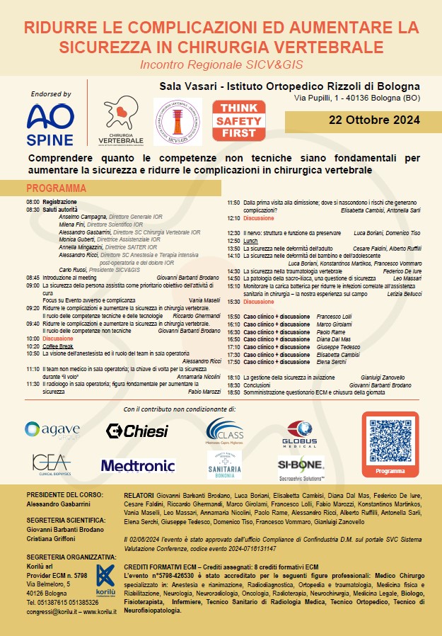 Ridurre le complicazioni ed aumentare la sicurezza in chirurgia vertebrale – Incontro regionale SICV&GIS