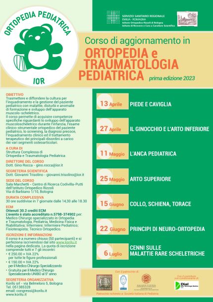 Corso di aggiornamento in Ortopedia e Traumatologia pediatrica . First Edition 2023